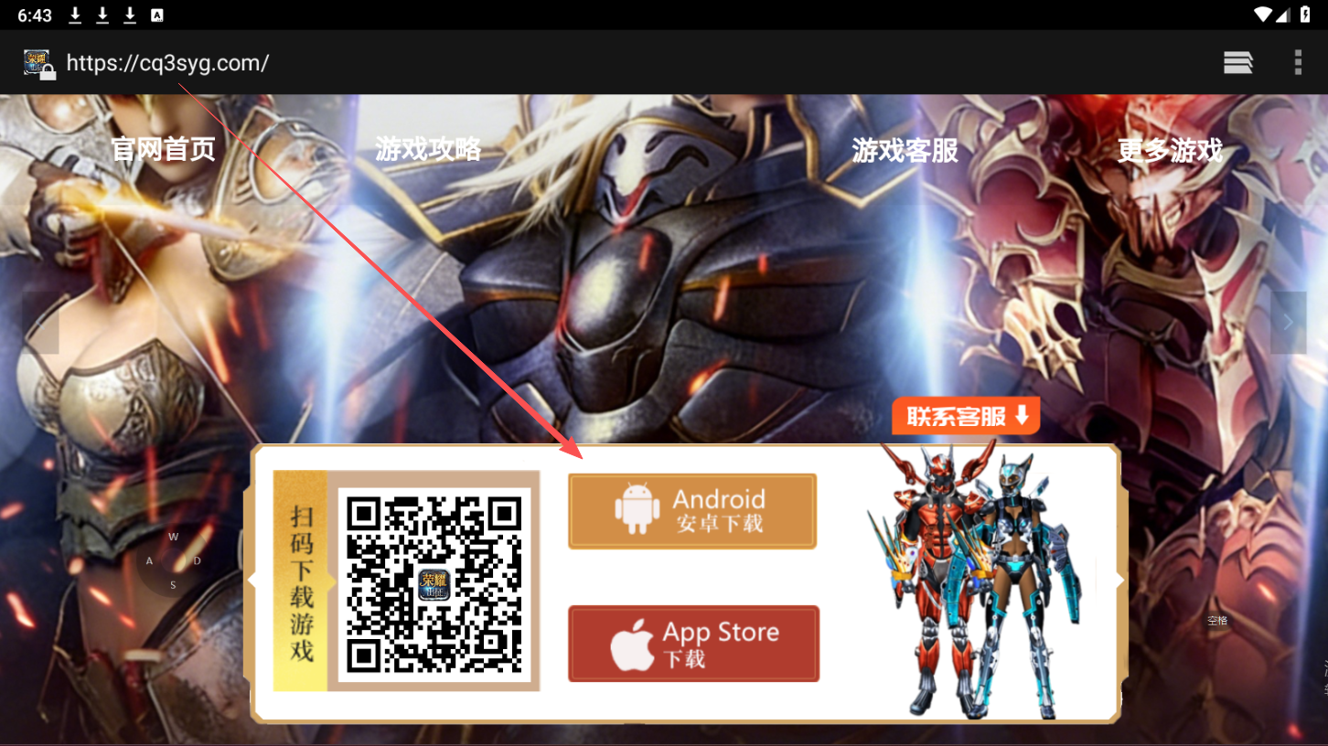 二、安装好后模拟器后,我们找到系统应用那个文件夹,找到浏览器,把《英雄年代怀旧版》游戏官网下载地址(www.cq3syg.com)复制到浏览器搜索进入官网,点击安卓下载安装游戏。